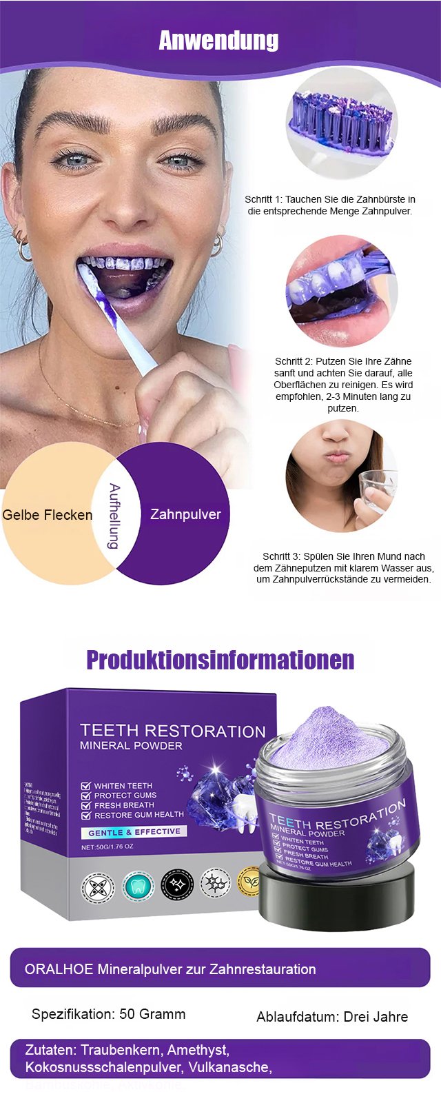 【Zahnpflege-Regeneration】Zahnreparatur und Aufhellung mit mineralischem Zahnpulver